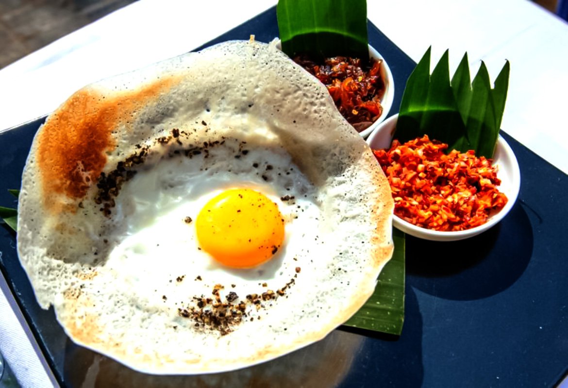 • Hoppers (Appam): A type of pancake made from fermented rice flour and coconut milk batter. There are several variations, including plain hoppers, egg hoppers with a soft-cooked egg in the center, and string hoppers, which are steamed rice noodle nests.